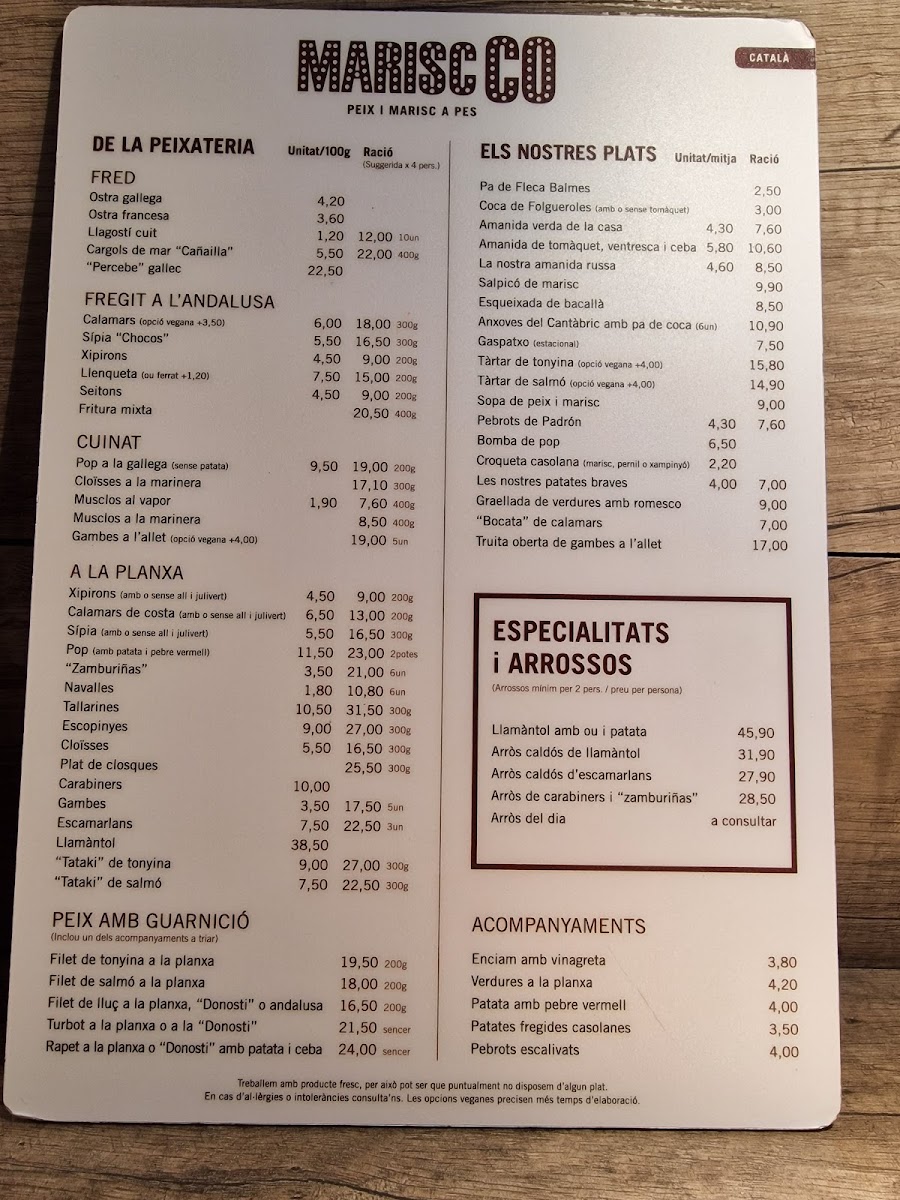 Welcome to MariscCo, a seafood haven nestled in the heart of L'Eixample, Barcelona. Here, diners are treated to an exquisite menu that showcases the ocean's bounty. The moment you step in, the fresh seafood displayed on ice sets the tone for a culinary adventure.